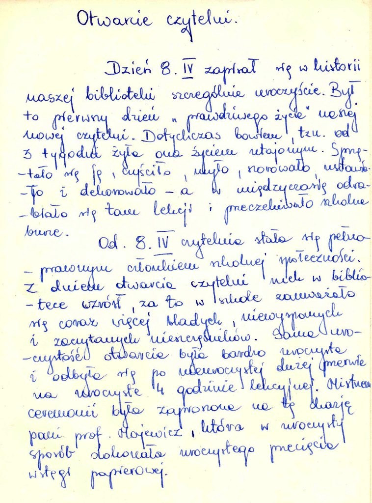Źródło: Michalina Szymańska „ Mini kronika biblioteki szkolnej” – zapiski z otwarcia czytelni.