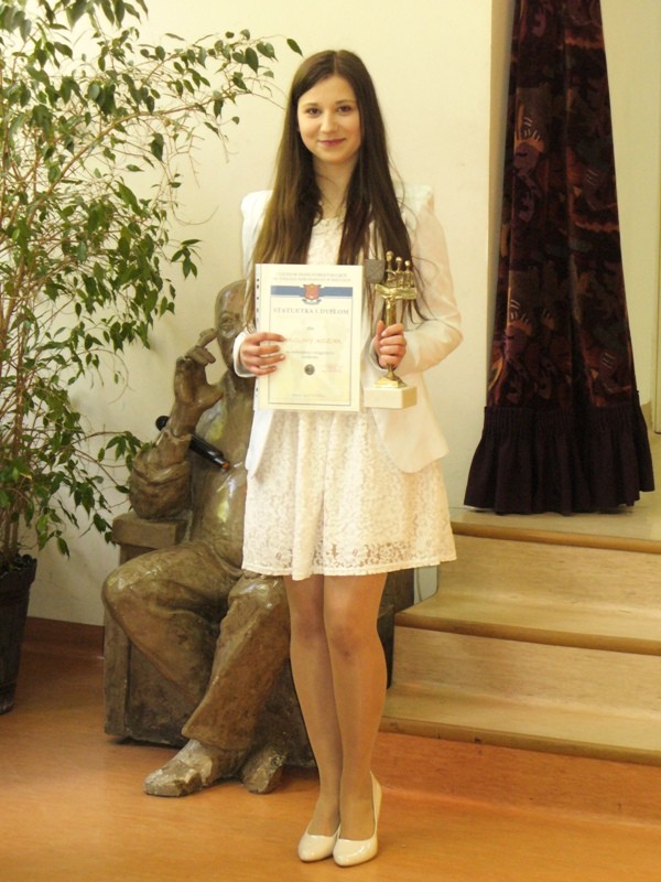 Zuzanna Dziedzic za wyniki w nauce ze średnią powyżej 5, dobre wyniki w konkursach matematycznych i fizycznych, a także sukcesy literackie, zainteresowania teatralne i koleżeńskość- umiejętność dzielenia się czasem z kolegami, zaangażowanie w roli przewodniczącej w życie klasy, w tym organizowanie wycieczek;
