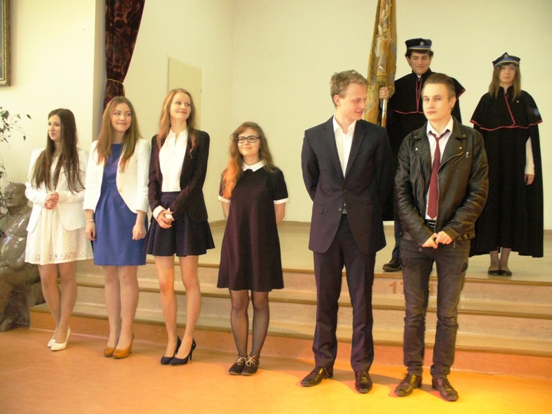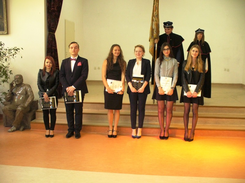 Katarzyna Zinin za osiągnięcia w dziedzinie języka rosyjskiego ( wyróżnienie w II etapie olimpiady) i tańca towarzyskiego ( pierwsze miejsca w ogólnopolskich turniejach i wicemistrzostwo Okręgu Świętokrzyskiego w 2014 r.) , a także uświetnianie pokazami wielu uroczystości szkolnych;