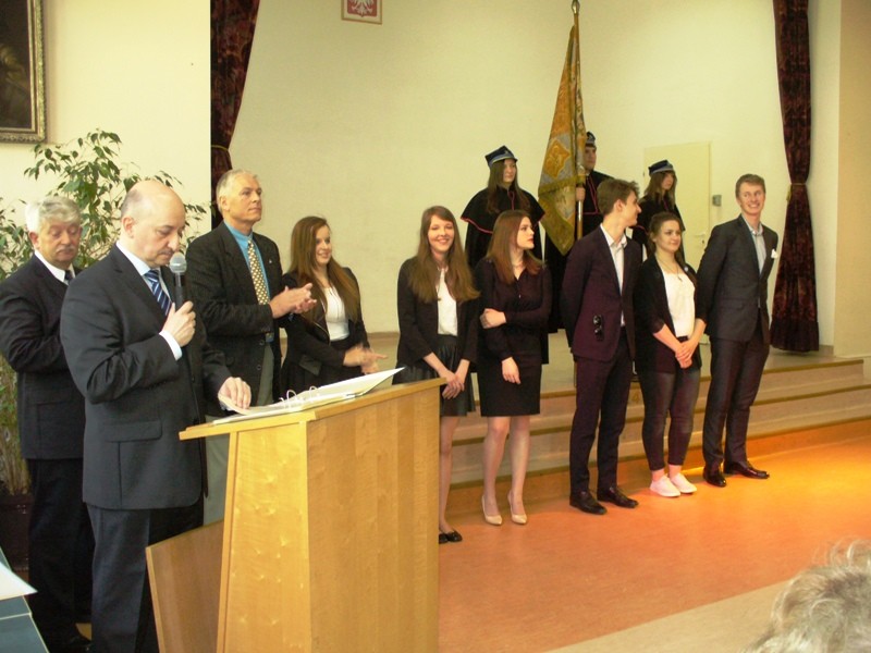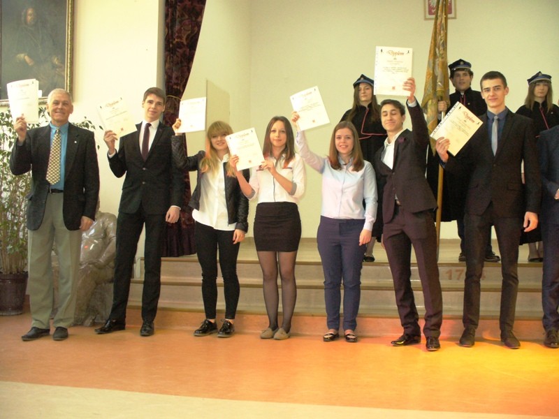 Krzysztof Degener powitał abiturientów w gronie absolwentów i przedstawił charakter istniejącego od 1995 roku Stowarzyszenia Absolwentów Liceum „Żeromszczacy”, a następnie wraz z sekretarzem Stowarzyszenia Piotrem Szafrańcem wręczył przyznawane od 2008 roku przez Stowarzyszenie Stypendia im Ireny Znojkiewicz przeznaczone dla uczniów z pasją. Stypendia zostały nazwane imieniem Mamy fundatora Macieja Znojkiewicza, inżyniera elektronika, pracownika naukowego Politechniki Warszawskiej, obecnie mieszkającego w Kanadzie.
