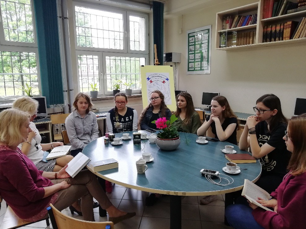 Na spotkaniu wysłuchaliśmy również fragmentu powieści Trzej muszkieterowie. Dwadzieścia lat później Aleksandra Dumas zaprezentowanego przez Karolinę Czech, uczennicę klasy 2a.