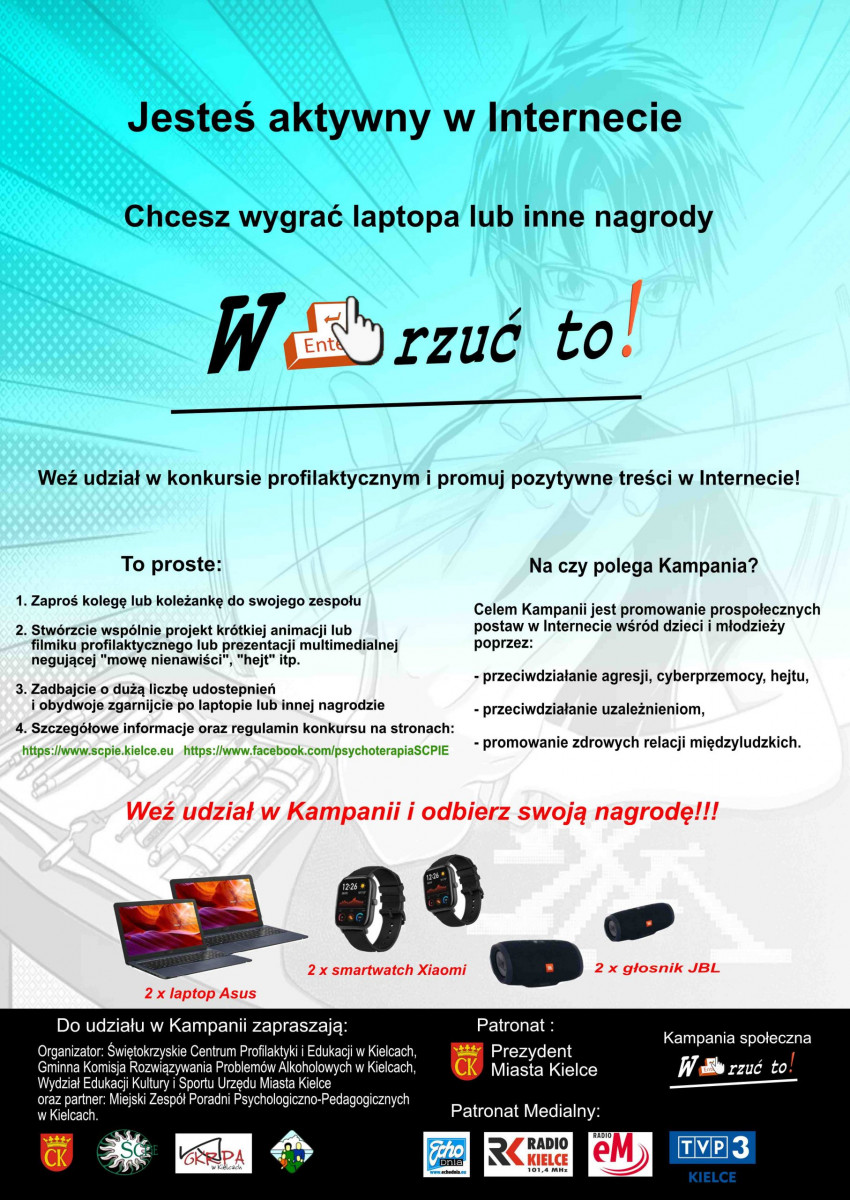 Weż udział w konkursie. Wygraj cenne nagrody. Świętokrzyskie Centrum Profilaktyki i Edukacji w Kielcach, jako główny organizator konkursu, ogłasza wydłużenie terminu zgłaszania prac konkursowych do 19.11.2020r.