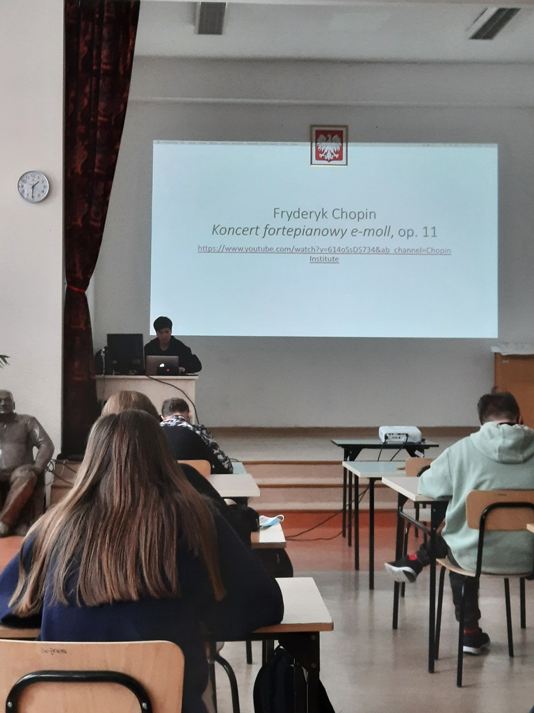 W dniu 09.12.2021r nauczyciel muzyki Pani Anna Pawłowska, w klasie 1C przeprowadziła lekcję otwartą z wykorzystaniem TIK. W zajęciach mogli uczestniczyć nauczyciele I LO, VI LO i ZSE w Kielcach w związku z nawiązaną współpracą w ramach sieci szkół.Temat lekcji: Solo i w zespole - sposoby wykonawstwa muzycznego.