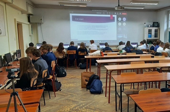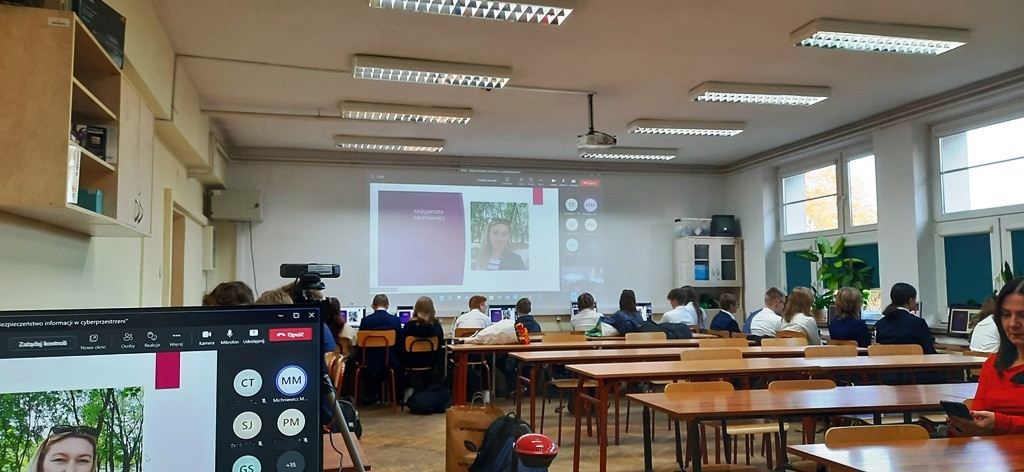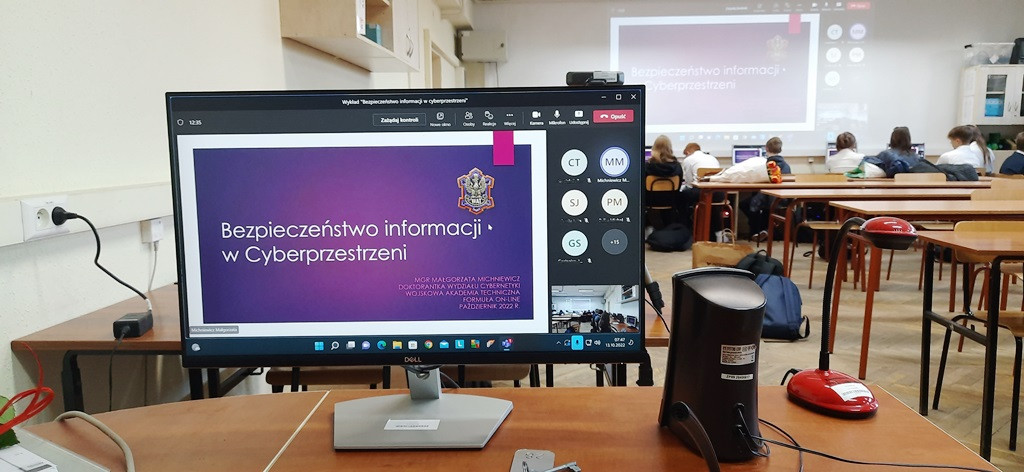 13 pażdziernika 2022 r. klasa 1 H, w ramach współpracy z Wojskową Akademią Techniczną oraz realizując szkolny projekt edukacyjny "Zdobywamy wiedzę korzystając z TIK" , uczestniczyła w zdalnych zajęciach na temat Bezpieczeństwa informacji w dobie cyberbezpieczeństwa. Wykład połączony z ćwiczeniami praktycznymi przeprowadziła doktorantka Wydziału Cybernetyki Pani mgr inż. Małgorzata Michniewicz.