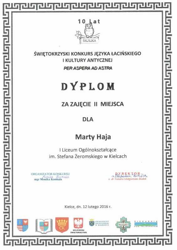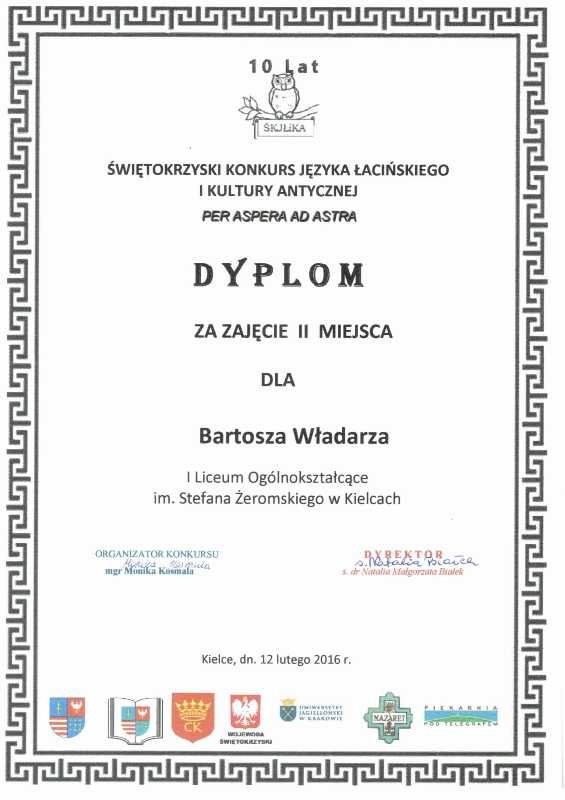 Świętokrzyski Konkurs Języka Łacińskiego i Kultury Antycznej -dyplom 2