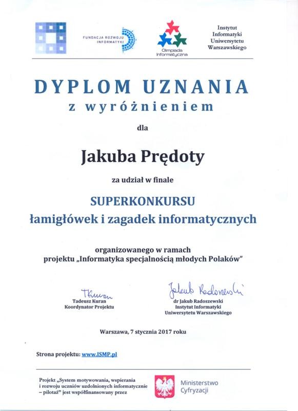 • Powiększ zdjęcie Dyplom Jakuba Predoty