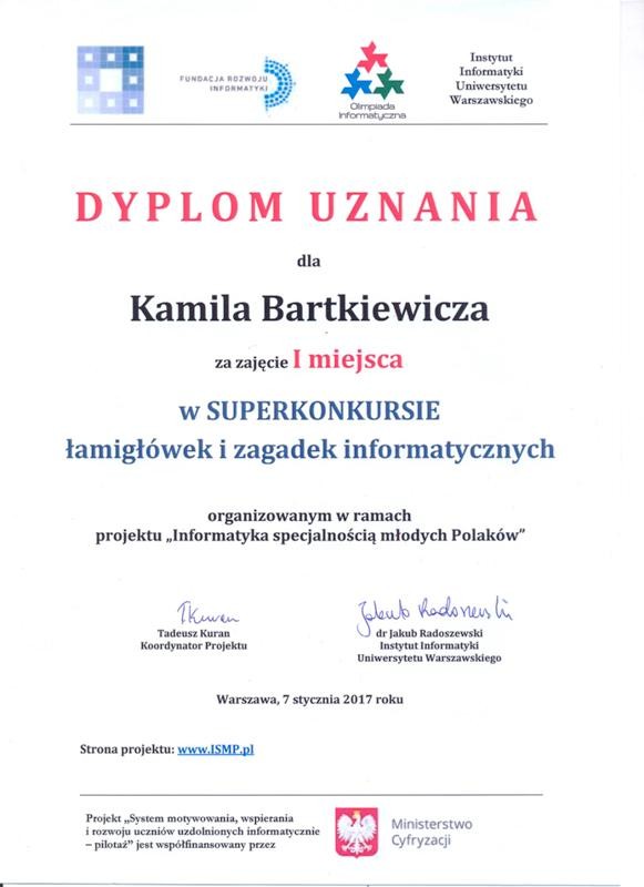 Dyplom Kamila Bartkiewicza
