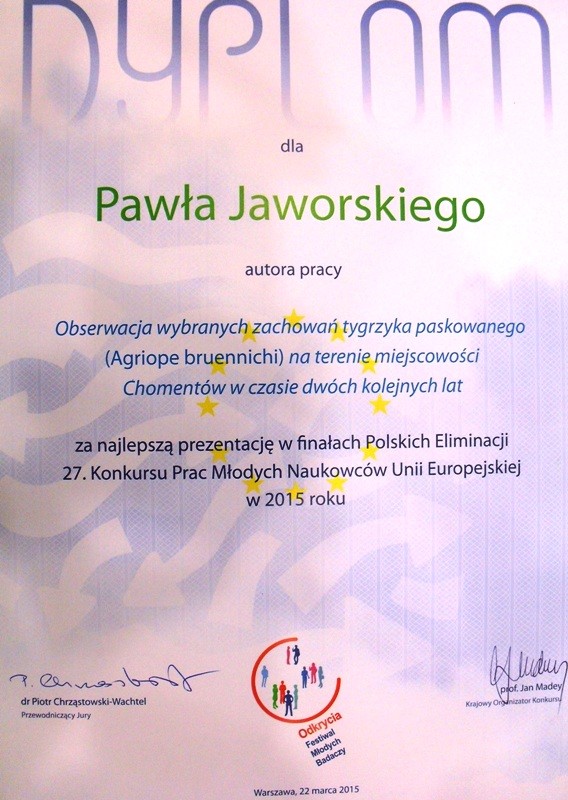 • Powiększ zdjęcie Konkurs Młodych Naukowców -dyplom