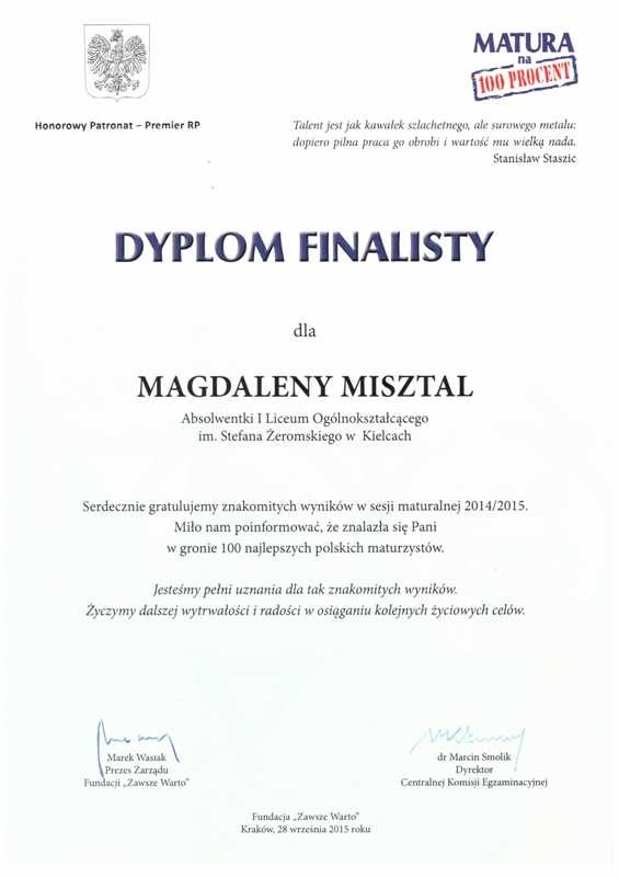 • Powiększ zdjęcie Dyplom Magdaleny Misztal