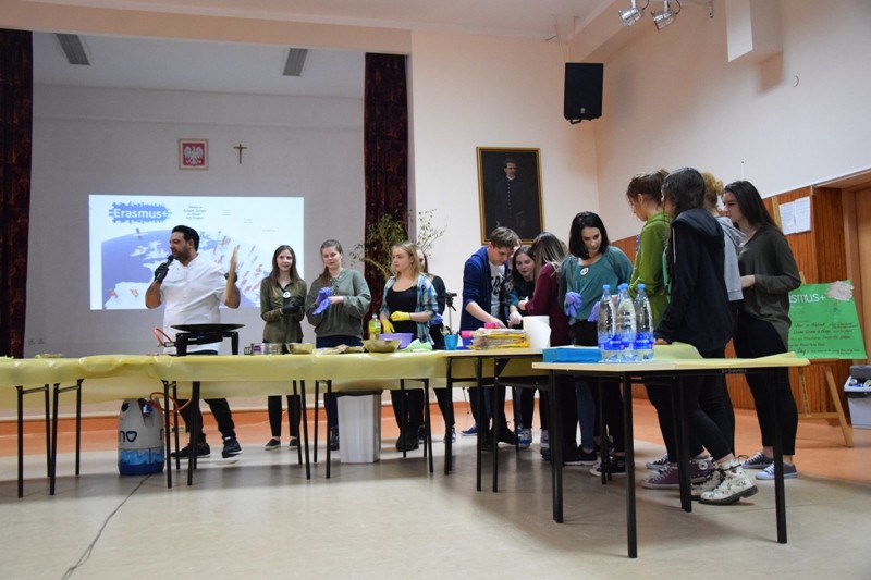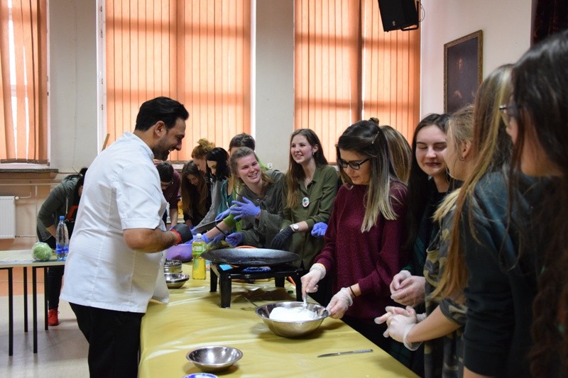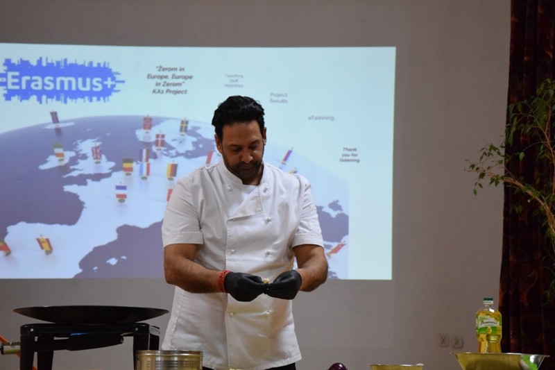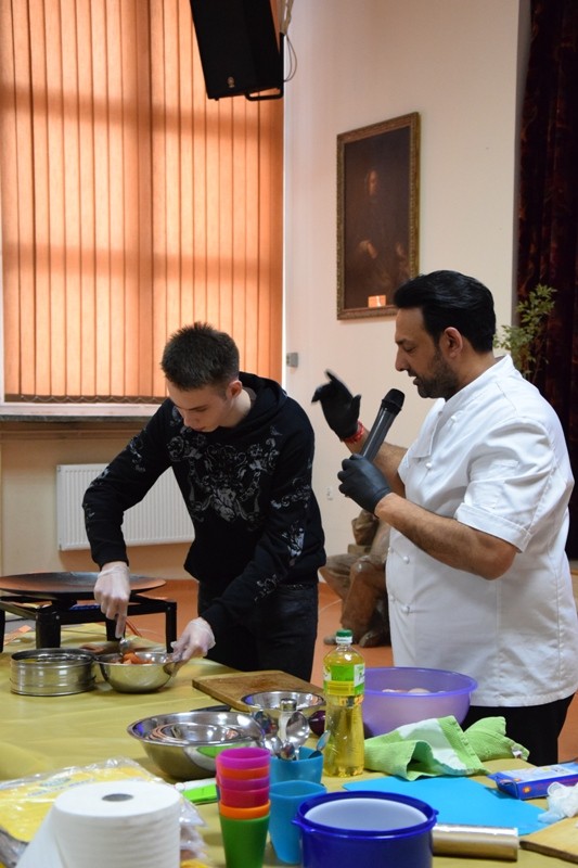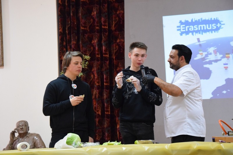 W drugiej części spotkania odbyły się warsztaty językowo-kulinarne z zaproszonym na tę okazję brytyjskim ekspertem kulinarnym, p. Sange’m Soodem: