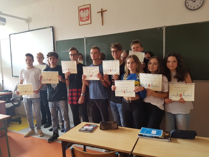 Z radością informujemy, że nasz projekt eTwinning „I Tell You My Place” został wyróżniony Krajową Odznaką Jakości zarówno w Polsce, jak i we Włoszech! Uroczyste wręczenie certyfikatów zaangażowanym w projekt uczniom kl. 2H odbyło się na ich pierwszej w tym roku szkolnym lekcji języka angielskiego.