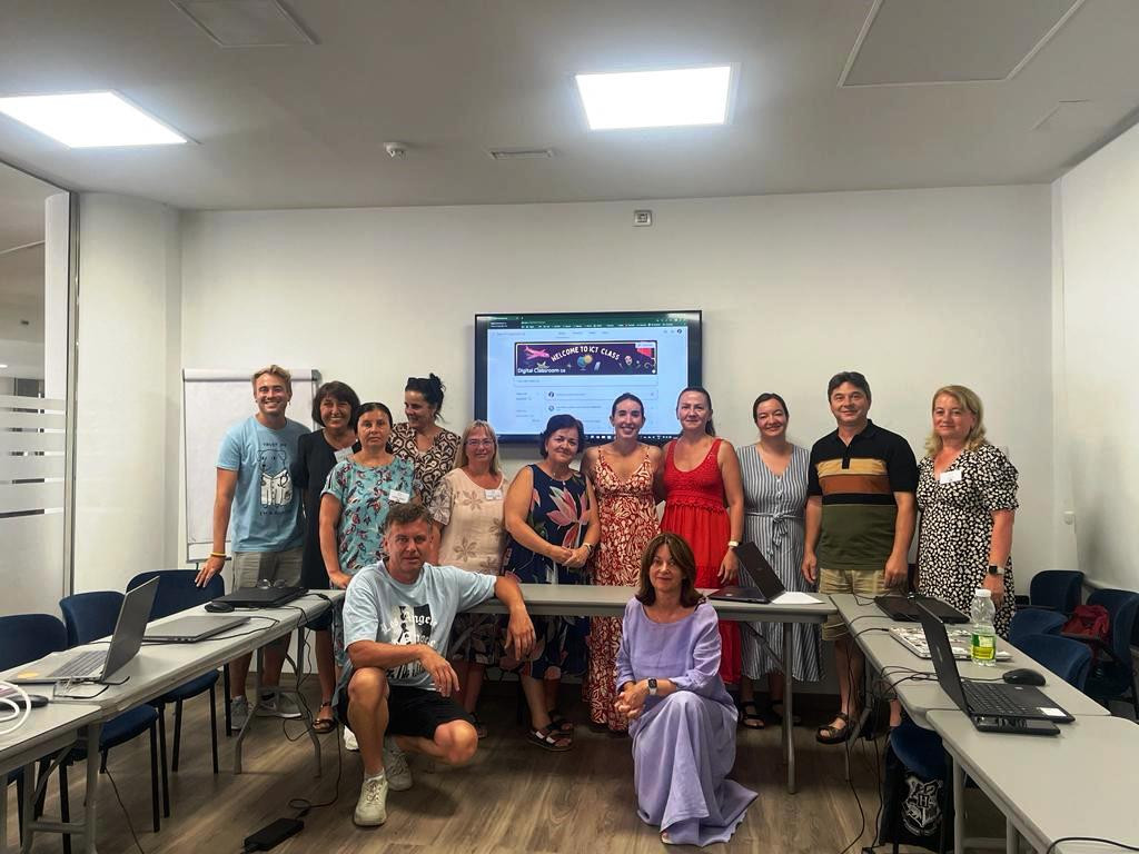Szkolenie miało na celu poznanie nowoczesnych narzędzi cyfrowych do zastosowania w koordynowaniu projektami unijnymi oraz pracy z uczniami na zajęciach języków obcych, a także rozwijanie kompetencji językowych nauczycieli biorących udział w szkoleniu. Szkolenie odbyło się w ramach grantu przyznanego na realizację szkoleń nauczycieli w ramach przyznanej 5-letniej akredytacji. Współfinansowane przez Unię Europejską.