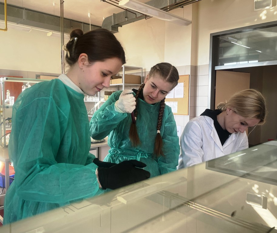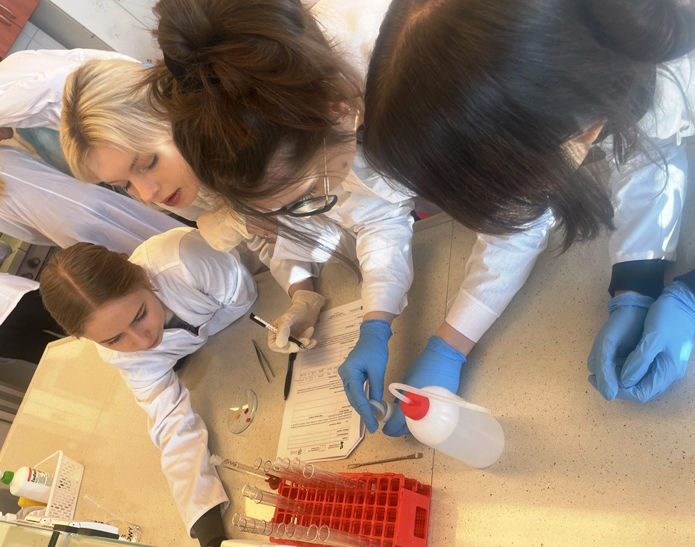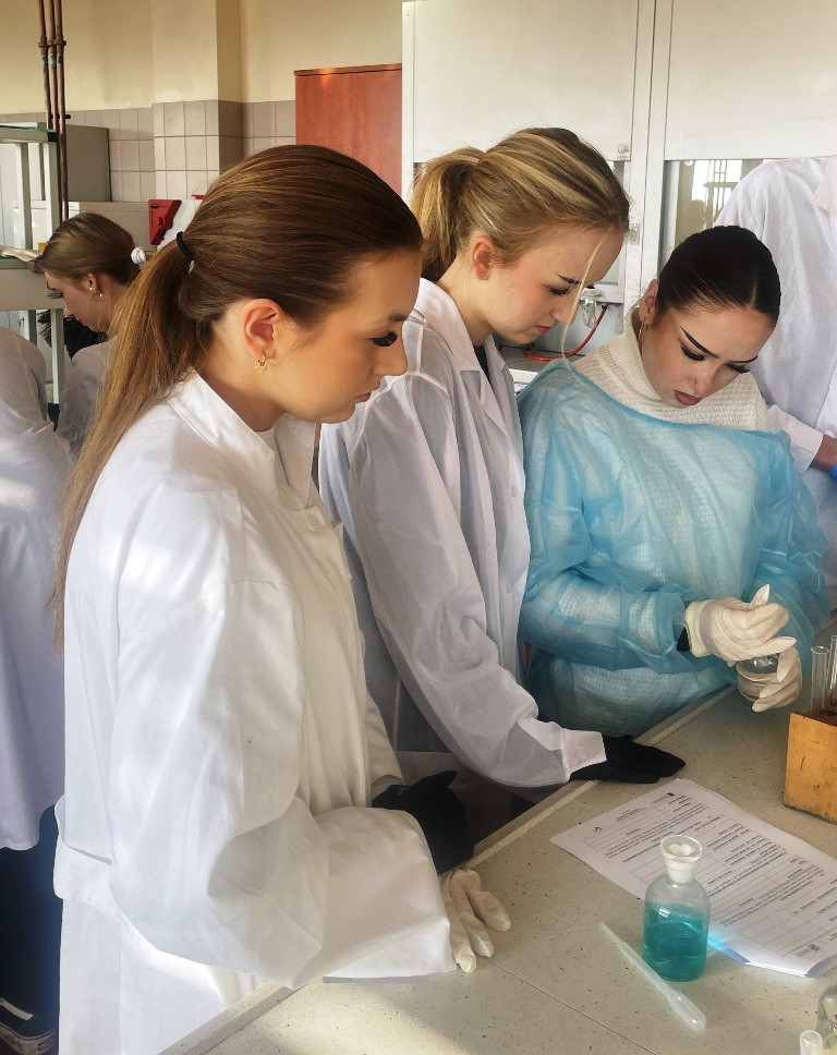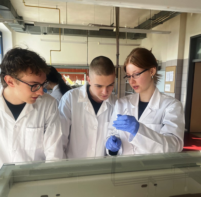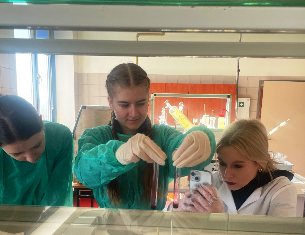 18 lutego 2025 r. uczniowie klasy 4E, pod opieką pani Doroty Marcinkowskiej uczestniczyli w zajęciach laboratoryjnych z chemii organicznej. Prowadzącą warsztaty była pani dr Magdalena Marcinkowska, która pomagała uczniom przy bardziej niebezpiecznych doświadczeniach oraz wyjaśniała pojawiające się wątpliwości.